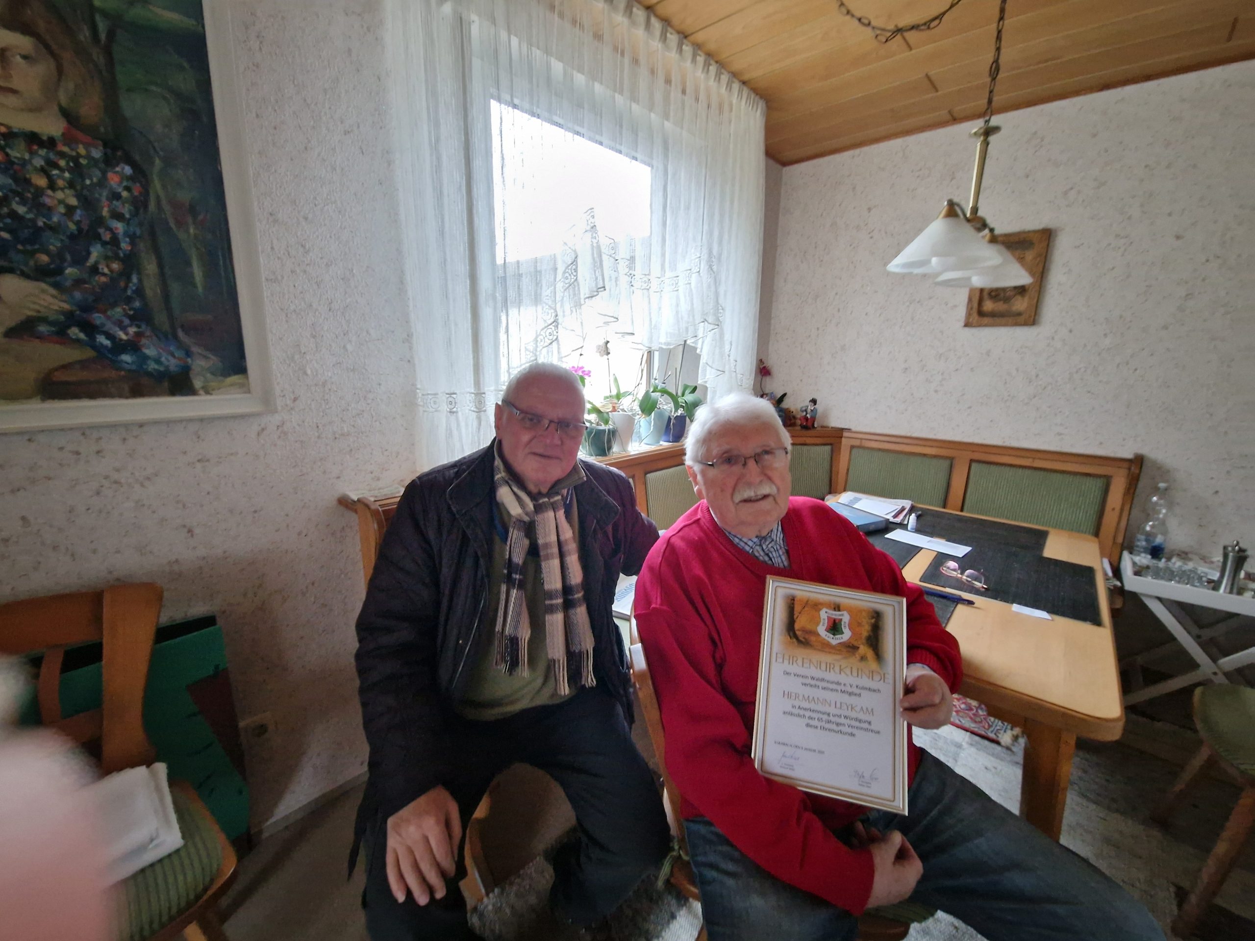 Unser Vorstand überreicht Hr. Hermann Leykam die Urkunde für die 65-jährige Mitgliedschaft.